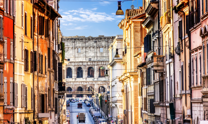 Un vicolo di Monti con vista sul Colosseo