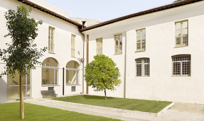 Nel cuore della città storica, a pochi metri da Trinità di Monti, ha sede l’edificio che ospita la Galleria d'Arte Moderna di Roma Capitale. Si tratta di un antico monastero di clausura, risalente alla fine del sec. XVI che fu sede dell’ordine delle Carmelitane Scalze. Il suo recupero realizzato dalla Sovrintendenza Capitolina nei primi anni Novanta ha trasformato una parte degli ambienti in sede museale mantenendo alcune caratteristiche della tipologia monastica. È il caso del chiostro e dell'affascinante giardino interno.