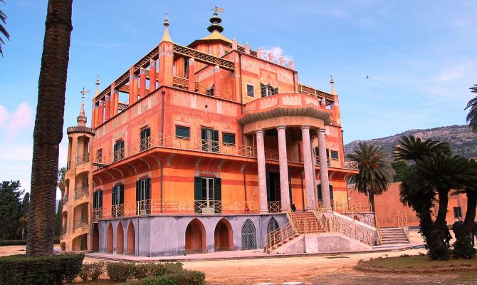 Immersa nel Parco della Favorita, l’esotico edificio si erge tra palme e limoni ed è stato dimora reale dei Borboni.