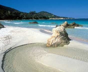 Corsica deluxe - Hotel di lusso Cala Rossa a Porto Vecchio. L'albergo è adagiato su una bellissima spiaggia di sabbia fine. Tra le mura di questa grande villa bianca fatta di patii, archi e angoli di relax, dominano i colori i chiari e i toni del sabbia.