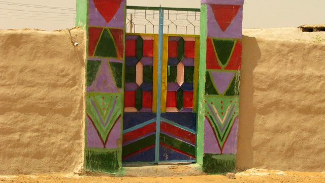 Dipinti tradizionali spiccano sulle partei imbiancate a calce all'interno di una casa. I nubiani sono dotati di un notevole senso artistico come rivelano le eleganti e sobrie decorazioni policrome con cui solitamente vengono affrescate le pareti delle case. Si tratta per lo più di disegni floreali o geometrici.